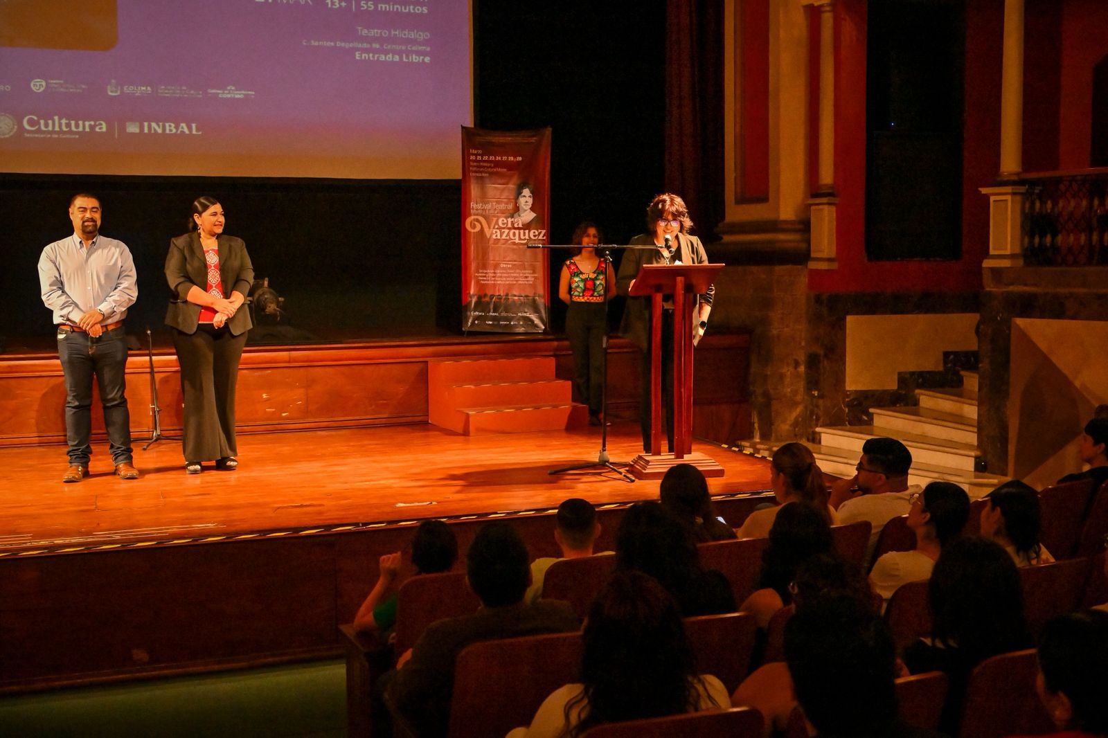 En el marco del Festival Teatral Infantil y Juvenil ‘Vera Vázquez’, organizado por la Subsecretaría de Cultura del Gobierno del Estado de Colima, en el teatro Hidalgo se llevó a cabo la función especial con la que esta entidad participó en el 18° Gran Maratón Nacional de Teatro para menores de edad, para celebrar el Día Mundial del Teatro para Infancias y Juventudes.