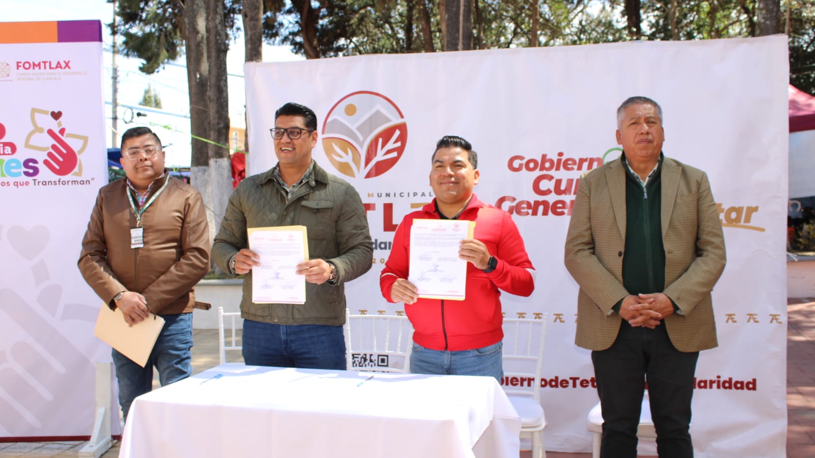 Previo al corte de listón, autoridades estatales y municipales firmaron un convenio de colaboración para facilitar el acceso a esquemas financieros como “Mujer Fomtlax”, “Microondas” y “Crédito Individual”, con tasas de interés que van del 0.5 al 1 por ciento mensual.