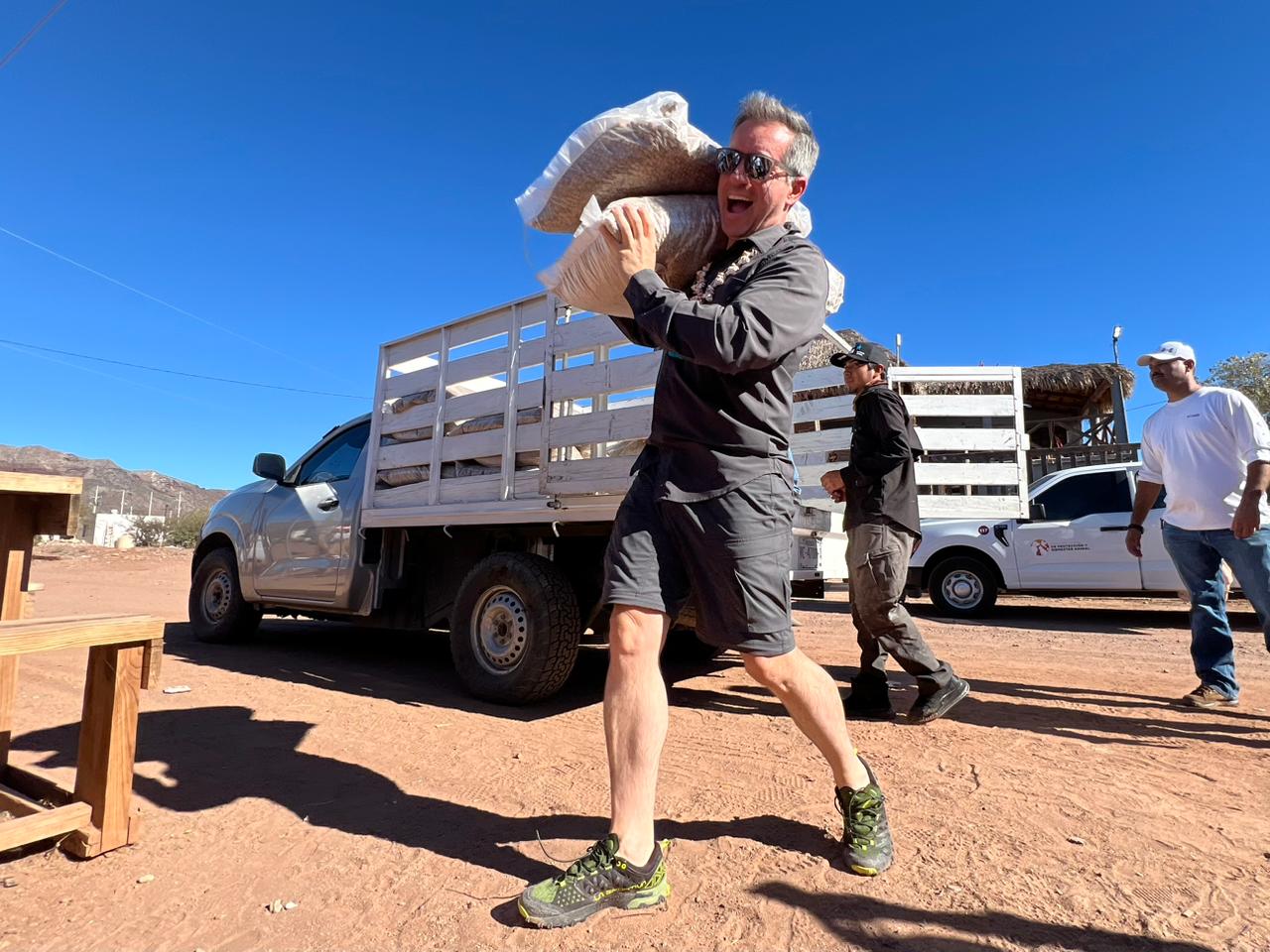 El apoyo fue recibido por el gobernador tradicional de la nación comca’ac, Jesús Félix Segovia, en un esfuerzo que refleja la suma de voluntades entre sociedad y autoridades para impulsar acciones en favor del bienestar animal.