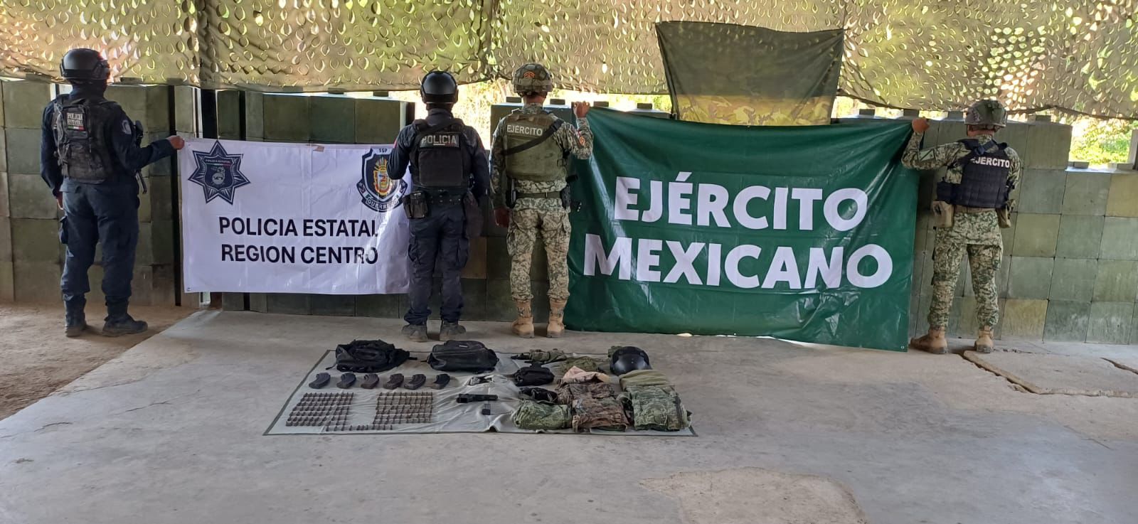 La coordinación interinstitucional entre la Policía Estatal y el Ejército Mexicano, integrantes de la Base de Operaciones Interinstitucionales (B.O.I.), permitió el aseguramiento de armamento, equipo táctico y probable enervante en el municipio de Juan R. Escudero.